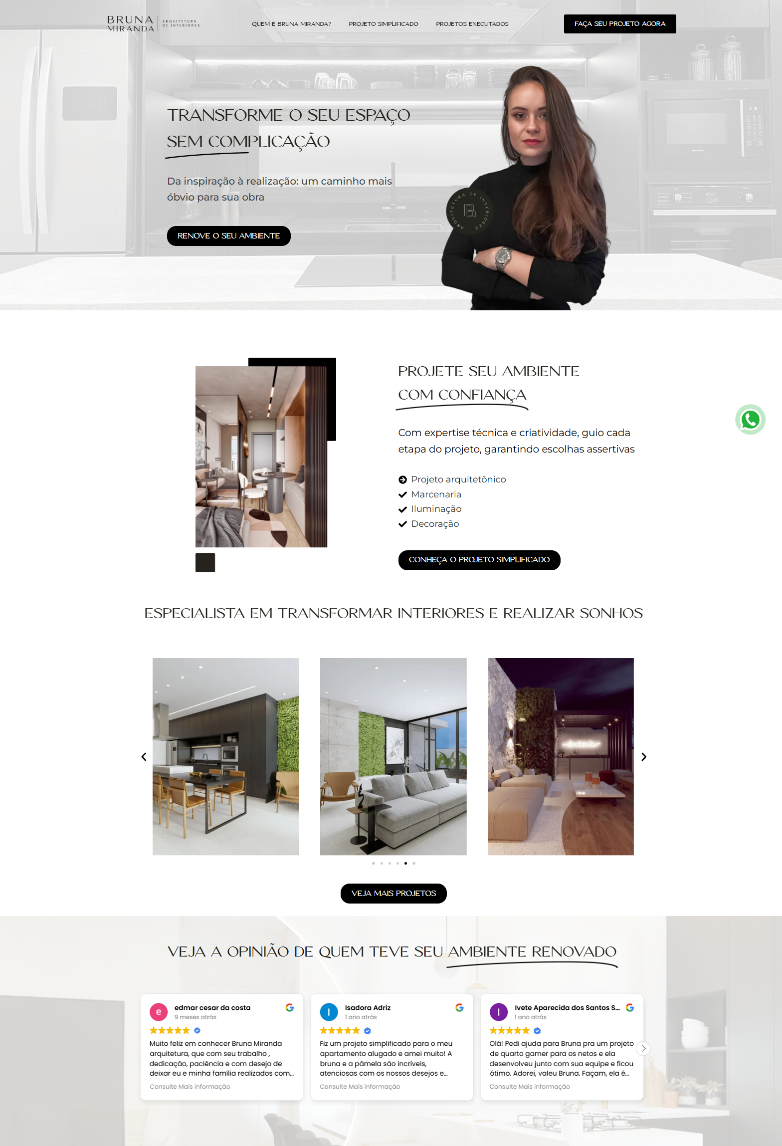 A arquiteta Bruna Miranda é referência em sua área e decidiu ir além das redes, criando um site profissional para consolidar sua marca e atrair novos clientes