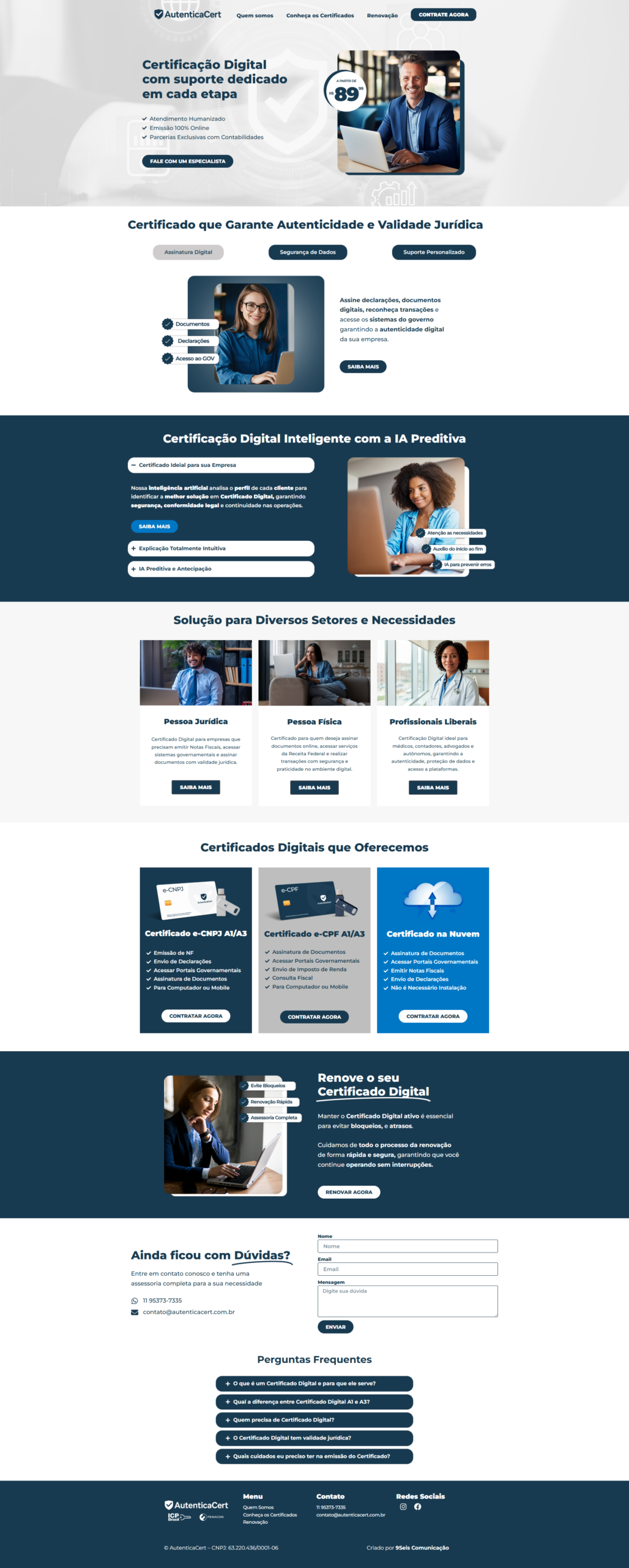 Localizada em São Bernardo do Campo, a AutenticaCert identificou a necessidade de criar uma presença online profissional para atrair mais clientes e destacar-se.