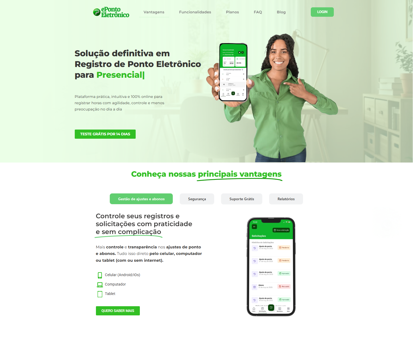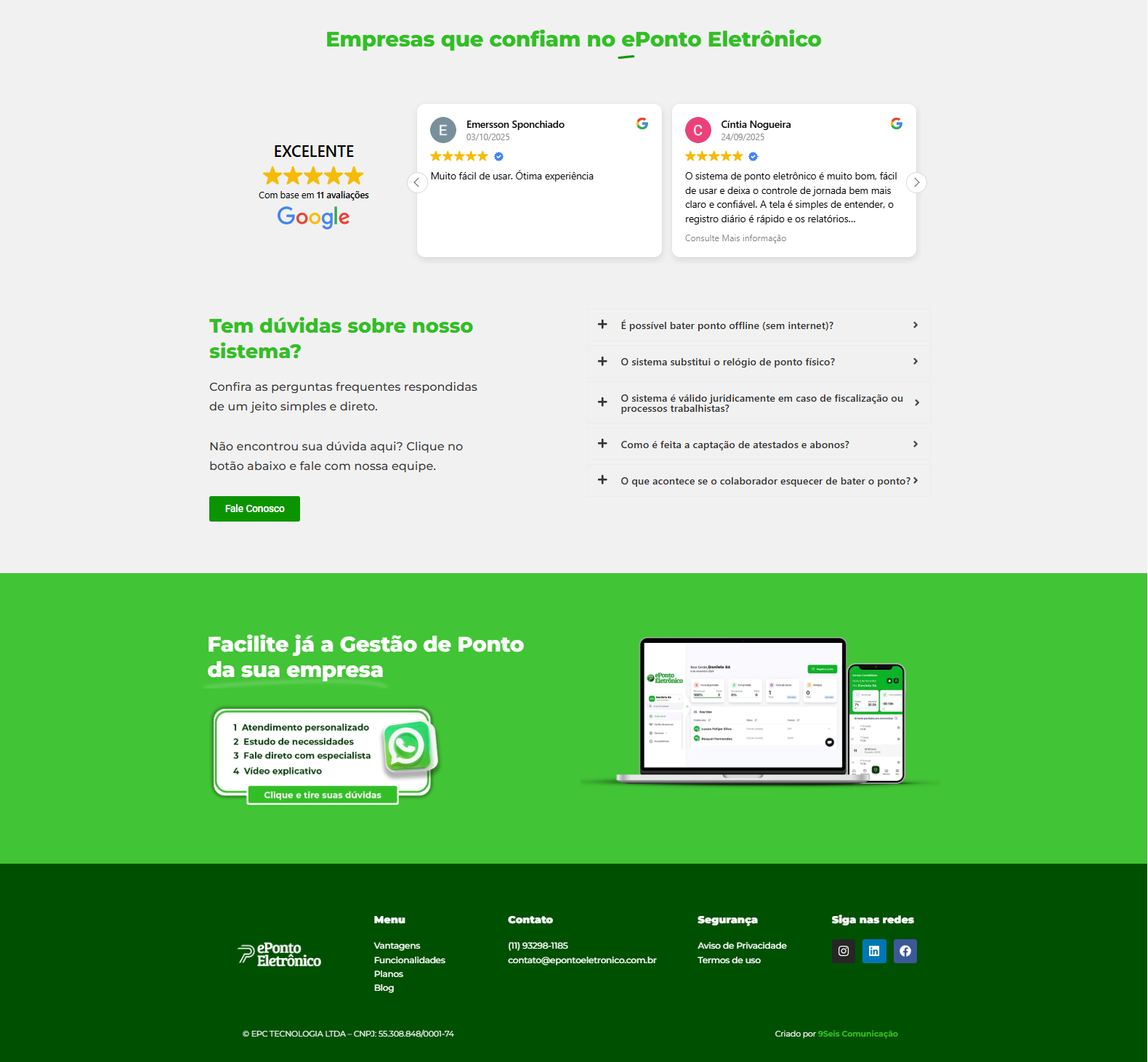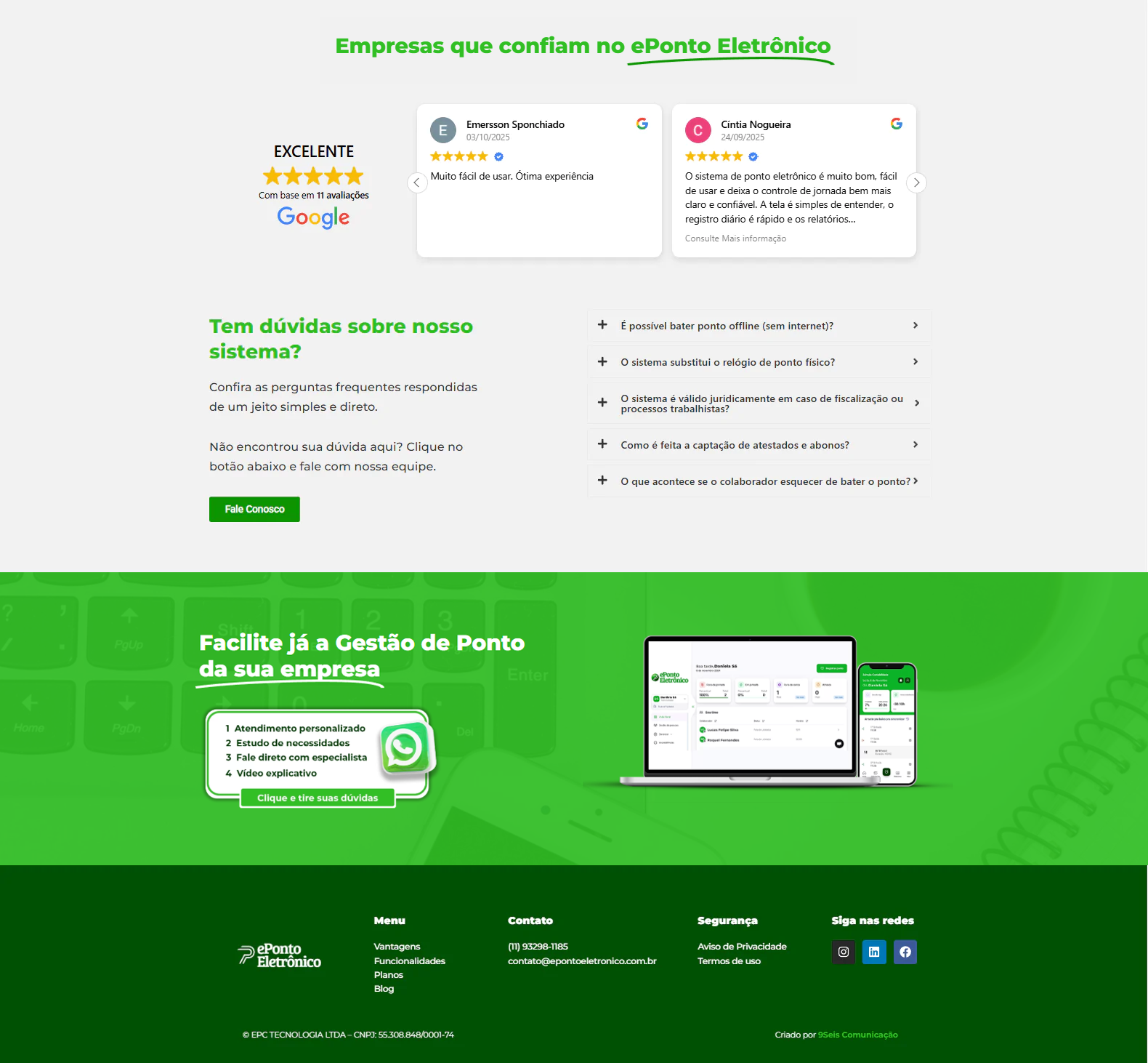 Desenvolvemos o site da ePonto Eletrônico, uma solução 100% digital para controle de ponto e gestão de horas trabalhadas