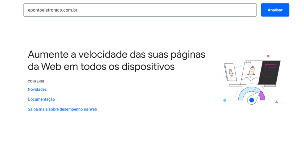 1 – Para utilizar, acesse https://pagespeed.web.dev/, cole o link do seu site na barra de pesquisa e clique em Analisar;